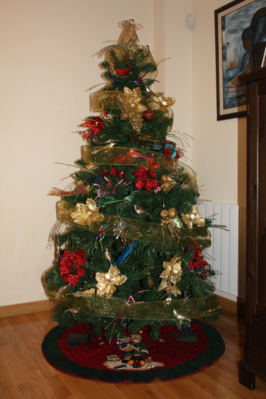 Este año hicimos un árbol especial, y es que la abuela Griselda nos regaló muchas cosas para decorarlo, flores, pajaritos, etc.; pero sobre todo, tenemos unos adornos muuuy especiales, la abuela nos hizo unas espigas con "santijuelas" como dice Gabi, preciosas....